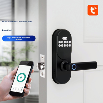 Cerradura de cerrojo inteligente de estilo americano, botón de partículas, contraseña, graffiti, puerta de madera, cerradura de huella dactilar con mango
